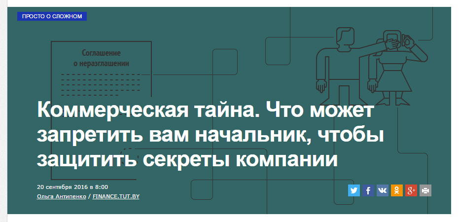 — У нашей фирмы достаточно узкая целевая аудитория: собственники бизнеса, топы, руководители юридических департаментов. Потому классическая реклама нам не очень интересна. Скорее необходимо присутствие в медиа как точка контакта с аудиторией и статус эксперта. В 2015 году у нас проходил ребрендинг, и мы решили поддержать его проектом «Просто о сложном» на tut.by. Идеи придумывали вместе, чтобы и наши интересы учитывались, и портала, который ориентирован на широкий круг читателей (прежде всего физлиц). Остались довольны результатом: ожидали 15-20 тысяч прочтений каждого материала, а получилось больше. Минимум, если не ошибаюсь, 35 тысяч, максимум – 126. Общее количество по проекту уже больше миллиона.