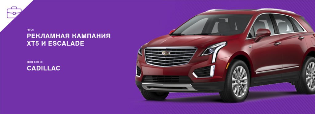 Нужно было продвигать две модели автомобиля: городской кроссовер XT5 и “яхту” Cadillac Escalade. Главный акцент на новый дизайн и большое количество функций, которые позволяют чувствовать себя комфортно во время езды. Особое внимание стоит уделить моторам, ведь мощь — это то, за что любят американские автомобили.