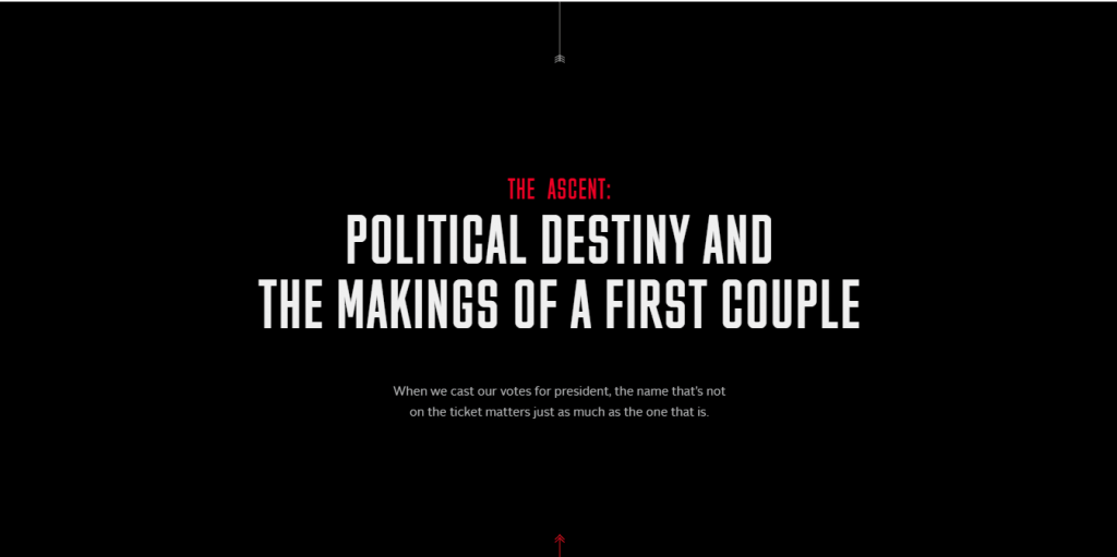 Можно назвать этот материал скорее аналитическим репортажем, потому что статья рассказывает про влияние первых леди на отдельные периоды истории президентства США. Непринятие двойного лидерства под названием Billary, Элеонора Рузвельт в качестве движущей силы за плечами президента и Нэнси Рейган, разделяющая триумфы и трагедии со своим супругом.