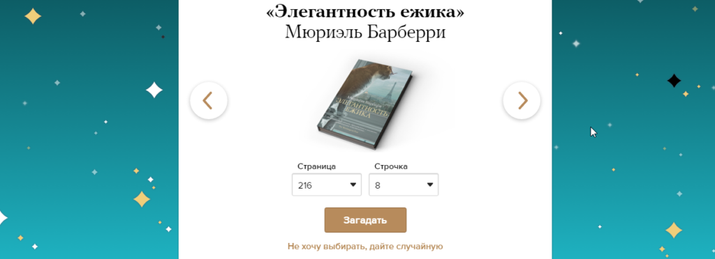 Возможностью поразвлекаться. Не знаю, как молодые люди, но девочки точно гадали на книжках в юном возрасте. «Медуза» предлагает вспомнить детство. Кроме того, таким хитрым способом «Республика» ненавязчиво рекламирует свои книги: вам нужно выбрать издание, по которому предскажут судьбу. Мне, например, сразу же захотелось узнать, что за экземпляр такой «Элегантность ежика» Мюриэль Барберри. Словом, как обычно, в умении сделать интересный нативный проект «Медузе» не откажешь.