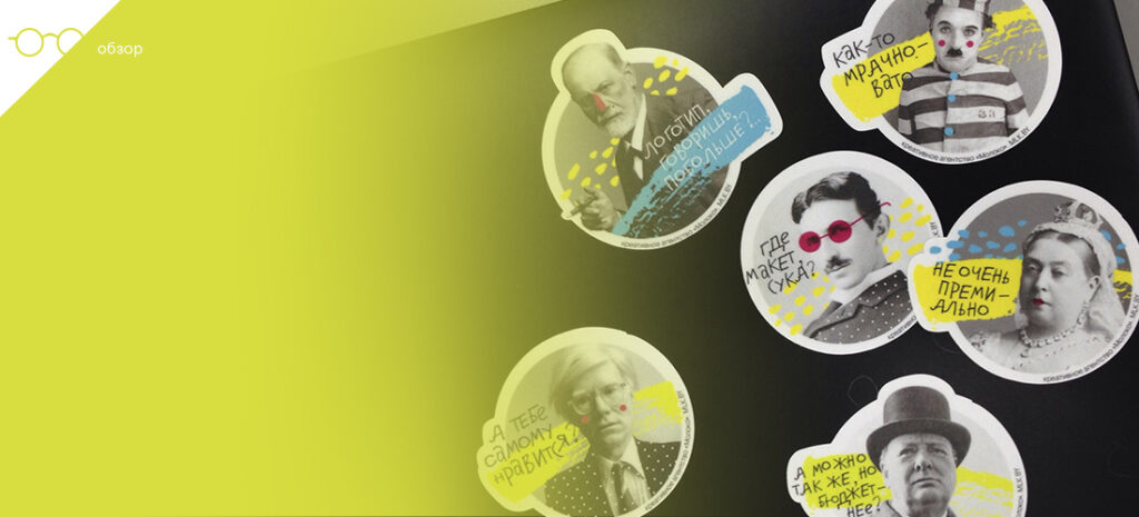 А что еще важнее – наш фирменный стиль требует незаурядного мышления от человека, с которым он работает, и даже проверяет дизайнера на прочность. Он не вписывается в строгие рамки и руководства по использованию, его элементы плохо укладываются в миллиметровые сетки, зато развязывают дизайнеру руки, стимулируя к творчеству и поиску интересного решения с их использованием. Поэтому в нашем гайде по стилю нет ультимативных правил, есть только советы и примеры того, как можно превращать молочную бутылочку — в визитку, хаотичные пятна — в презентацию, а суровые портреты исторических личностей – в забавные стикеры.