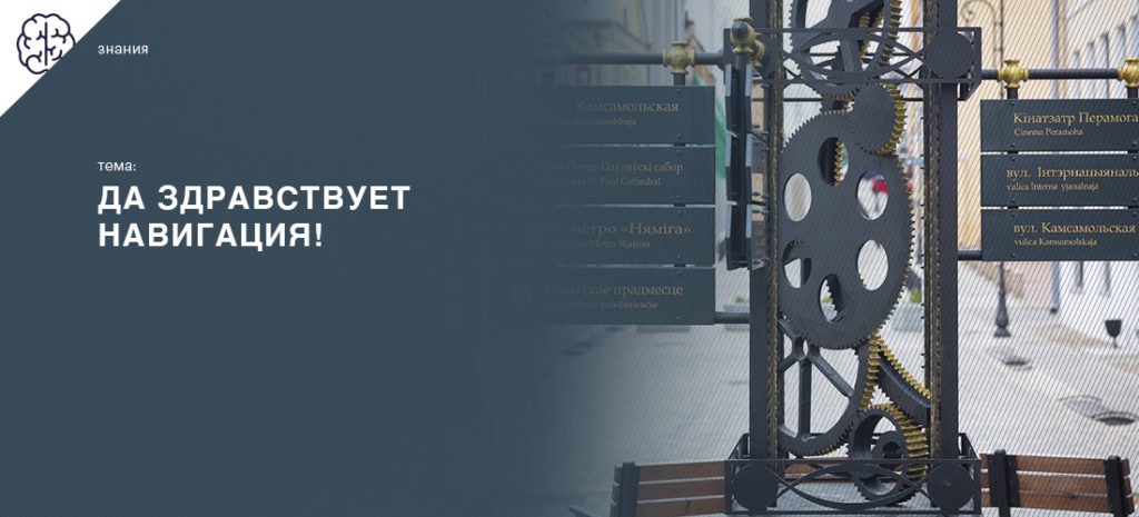 Основные ошибки в навигации: 1. Разный масштаб по горизонтали у шрифта (Нямiга растянут, сабор стянут) 2. Разное выравнивание текста/иконок 3. Нет системы в подаче иконок. Либо на каждую достопримечательность добавить иконку, либо оставлять только для метро. 4. Неправильная транслитерация (над l в kamsamolskaja нет ‘, internacionalnaja пропущено с) 5. Неверный порядок слов (Vul. с сокращением д/б после наименования; cinema на первое место) 6. Ошибка в написании на английском в табличке с собором 7. На табличке с ул. Интернациональной после вул. 2 пробела